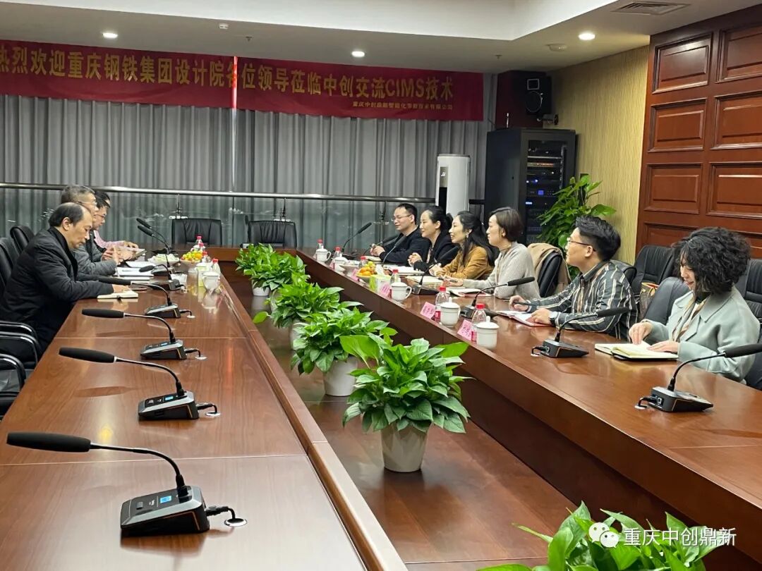 2021年11月23日下午,重庆钢铁集团设计院总经理孙长领(下图右5)、市场部副部长刘凌鸥、环保所所长张苗、给排水专业负责人唐建华一行到重庆中创鼎新运营中心及工厂就我司CIMS技术及行业应用进行参观交流,公司总经理李璧(下图左5)带领营销和技术团队骨干人员陪同参观并进行亲切交谈。