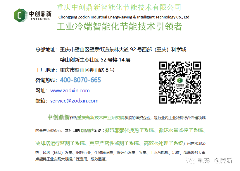 CIMS是由1个软件加上5个子系统联合构成的一套在线化解决方案。一个软件是指冷端智能运维管理软件,5个子系统分别由凝汽器强化换热子系统、循环水量监控子系统、冷却塔运行监测子系统、真空严密性监测子系统、高效水处理子系统构成。通过对凝汽器系统、真空严密性、循环水质、循环水量、冷却塔等系统改造,并结合数据实时采集、监测及数学模型,提供冷端系统最佳运行维护方案,有效提升冷端系统运行效率。此技术可广泛应用于钢铁、水泥余热发电、火电、垃圾焚烧、生物质发电、化工等行业,系统化提升发电效益, 实施CIMS后,节能增效方面(增加发电量+节能电量)可达发电量的3%-10%;环保方面可达到超低排放甚至零排放的标准,从而助力碳达峰、碳综合的宏伟目标。